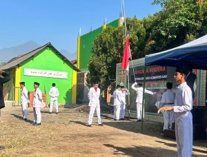 Suasana pagi yang cerah menambah kekhidmatan jalannya upacara. Para peserta dengan tertib berbaris rapi, mengenakan pakaian putih hitam dengan atribut merah putih yang menjadi simbol perjuangan dan pengorbanan bangsa. Upacara diawali dengan pengibaran bendera Merah Putih yang dipimpin oleh petugas paskibra dari kalangan santri pilihan.